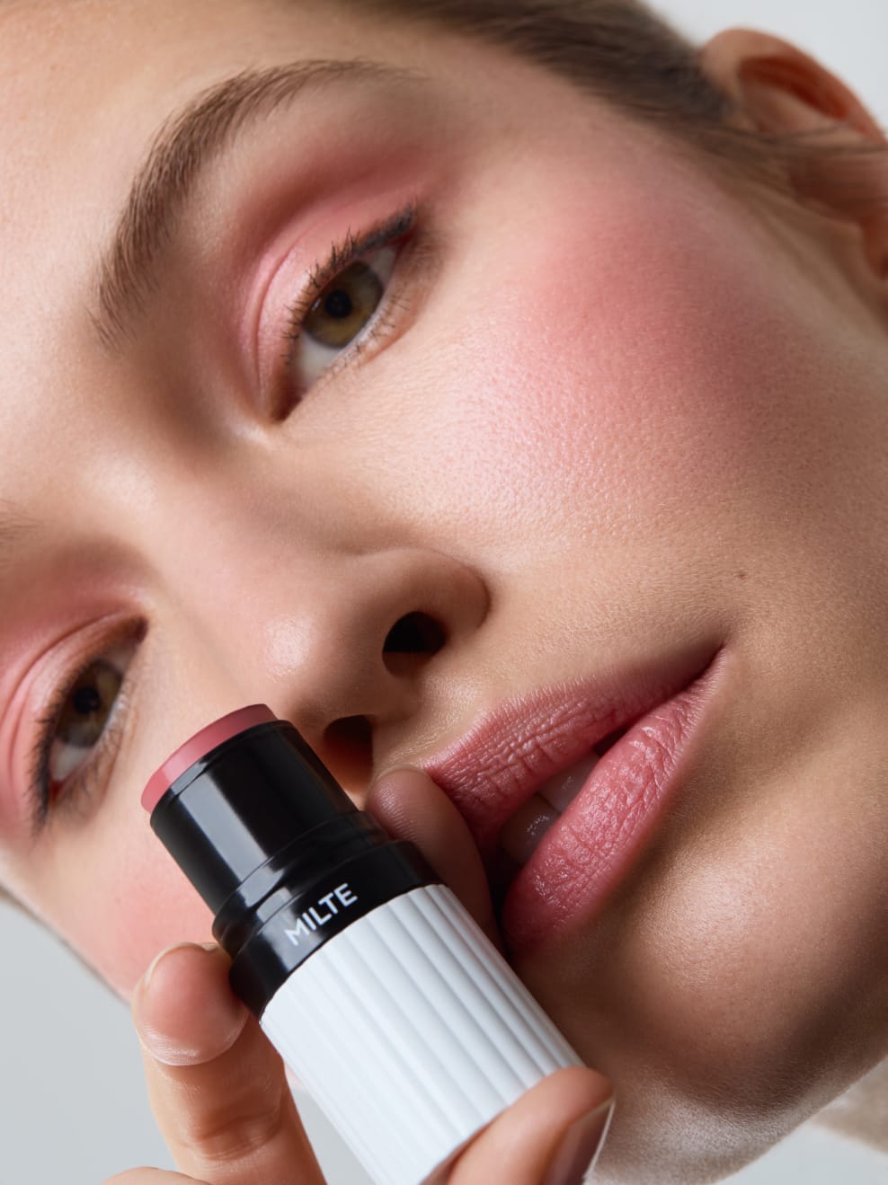 MILTE Multistick can be easily applied over day cream or foundation. For a natural look and light glow, use either your index finger or a brush.