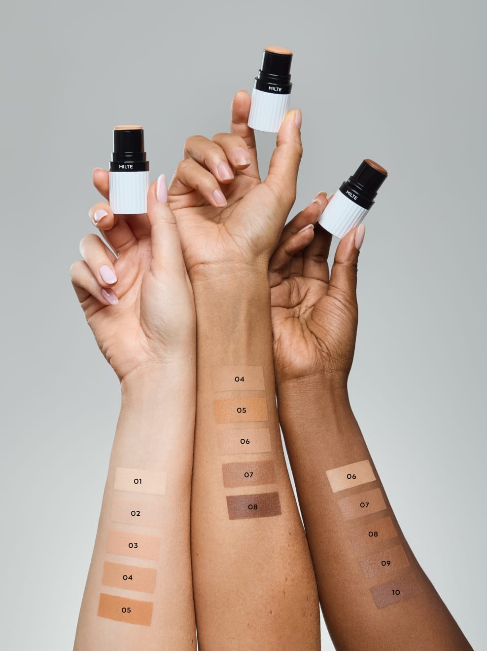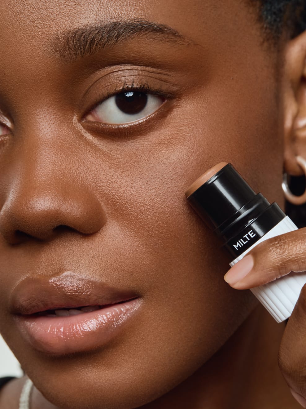 For more definition and depth, you can reach for the next darker and next lighter foundation stick and use it to softly contour your face.